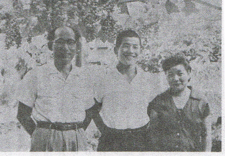 名古屋での交歓大会を終えて帰郷した那須選手は、8月2日の日曜日の朝、多治見教会の礼拝に出席されました。礼拝後、教会員の祈りに送られて出て行く那須君は、この春とくらべ胸の厚さもずいぶんまして、ローマをめざすひとみが、ひときわ輝いていました。(写真は、多治見市、市之倉の自宅にて、両親と共に)。石丸 新