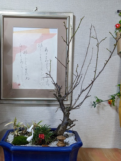 ☆ 新しい年になりました。あけましておめでとうございます。不思議なもので今年も玄関の鉢植えの梅の花が開きました。もう、10年近く毎年、年の初めに咲きます。自然って、本当に素晴らしいですね・・・。今年の写真をお送りしますね。