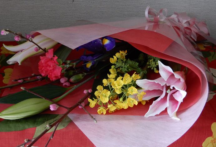 昨日は誕生日でした。今は、まだ目を休めないとだめみたいですので、PCも携帯も禁止です。花束を主人からもらいましたので、写真を送りしますね。