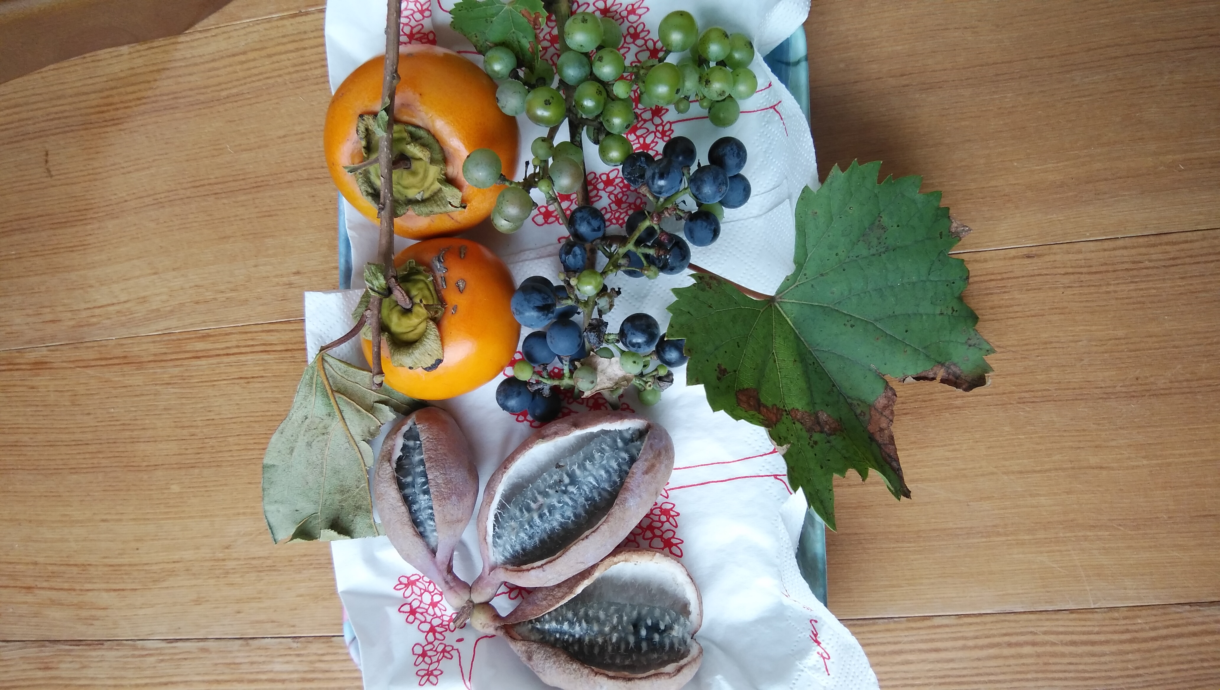 里にも霜が降りる時期になりました。知人に秋の幸をいただきました。ざくろ、菊芋、黒柿、むかご、小豆、ローレル(月桂樹の葉)です。鉢植えを縁側に取り込み、チューリップの球根を植えて、庭仕事もぼちぼちおしまいになります。 「信州のジャーナル友」より